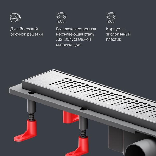 Дренажный канал Am.Pm PrimeFlow W02SC-P11-060-01SB, 60 см, с перфорированной решеткой, цвет хромПредставляем уникальный трап для душа PrimeFlow с ультрамодной дизайнерской решеткой.Невероятно высокая скорость слива — 45 л/мин благодаря двухкамерному комбинированному затвору. Надежность и долговечность изделия. Легкое обслуживание трапа: простая разборка и чистка сифона.Продукт обладает низкой высотой монтажа и возможностью регулировки, что предполагает экономию бюджета при заливке пола. Трап имеет инновационную конструкцию решетки с фильтром, что значительно увеличивает межсервисный интервал.Размер изделия 60 см. Дизайн продукта выполнен в матовом стальном цвете.