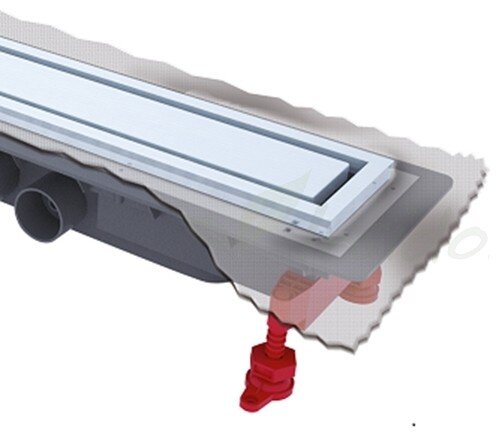 Основные характеристики:Длина: 110 смГидрозатвор: 5 смВысота желоба: 8.9 смСкорость слива: 79 л/минДиапазон регулировки ног: 3.5 смВысота регулируется от 89 до 124 ммМатериал желоба: пластик ABSМатериал решетки: нержавеющая стальСоединения канализационных труб: 2 соединения типа «папа» D50 мм, 2 соединения типа «мама» D50 мм,  3 соединения типа «папа» D43 мм